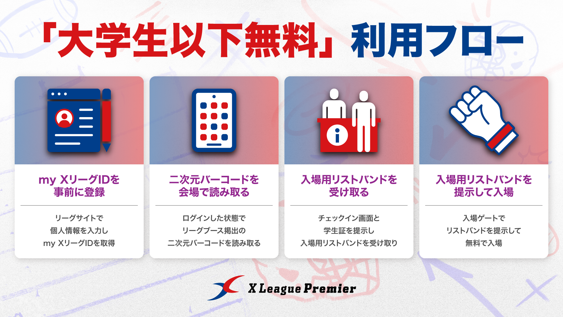 大学生以下の方は、2026シーズンのXリーグプレミア全試合を無料で観戦いただけます。