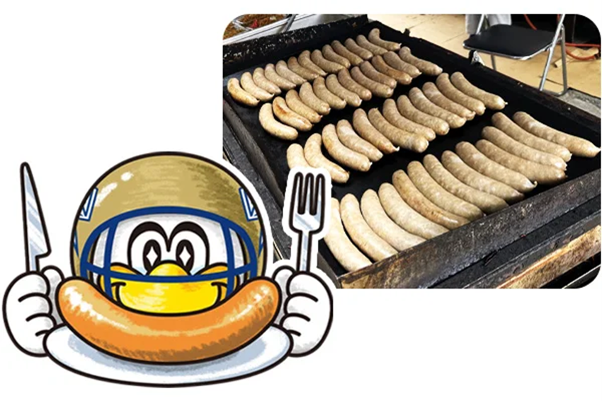 熱々の焼きたて習志野ソーセージを食べながら、選手たちに熱い声援を送ってください。