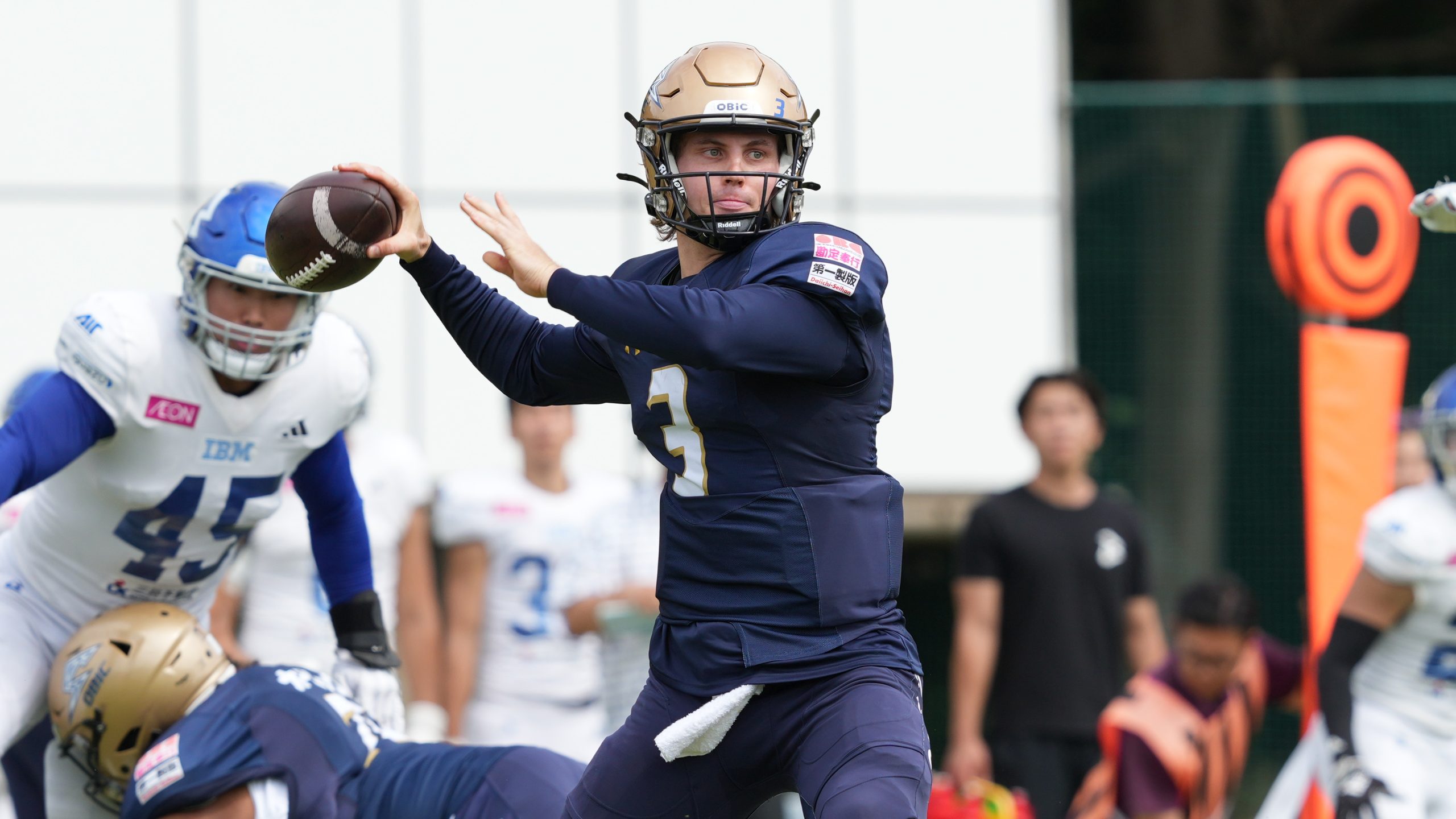 【前半のパッシングリーダーとなったオービックQBピアース・ホリー ©X LEAGUE】