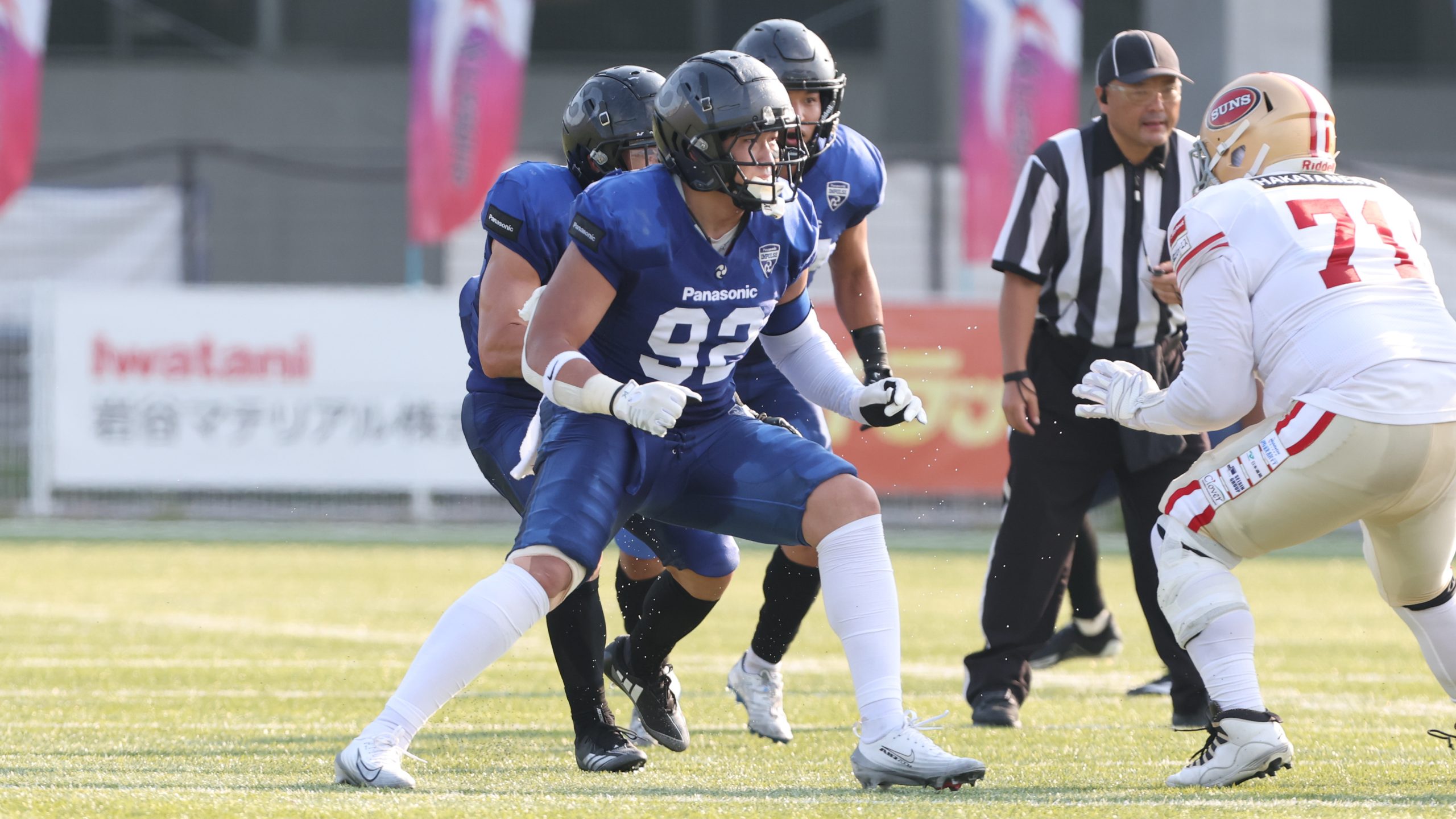 【今季すでにインターセプトとファンブルリターンでTDをあげているパナソニックDL有村 雄也 ©X LEAGUE】