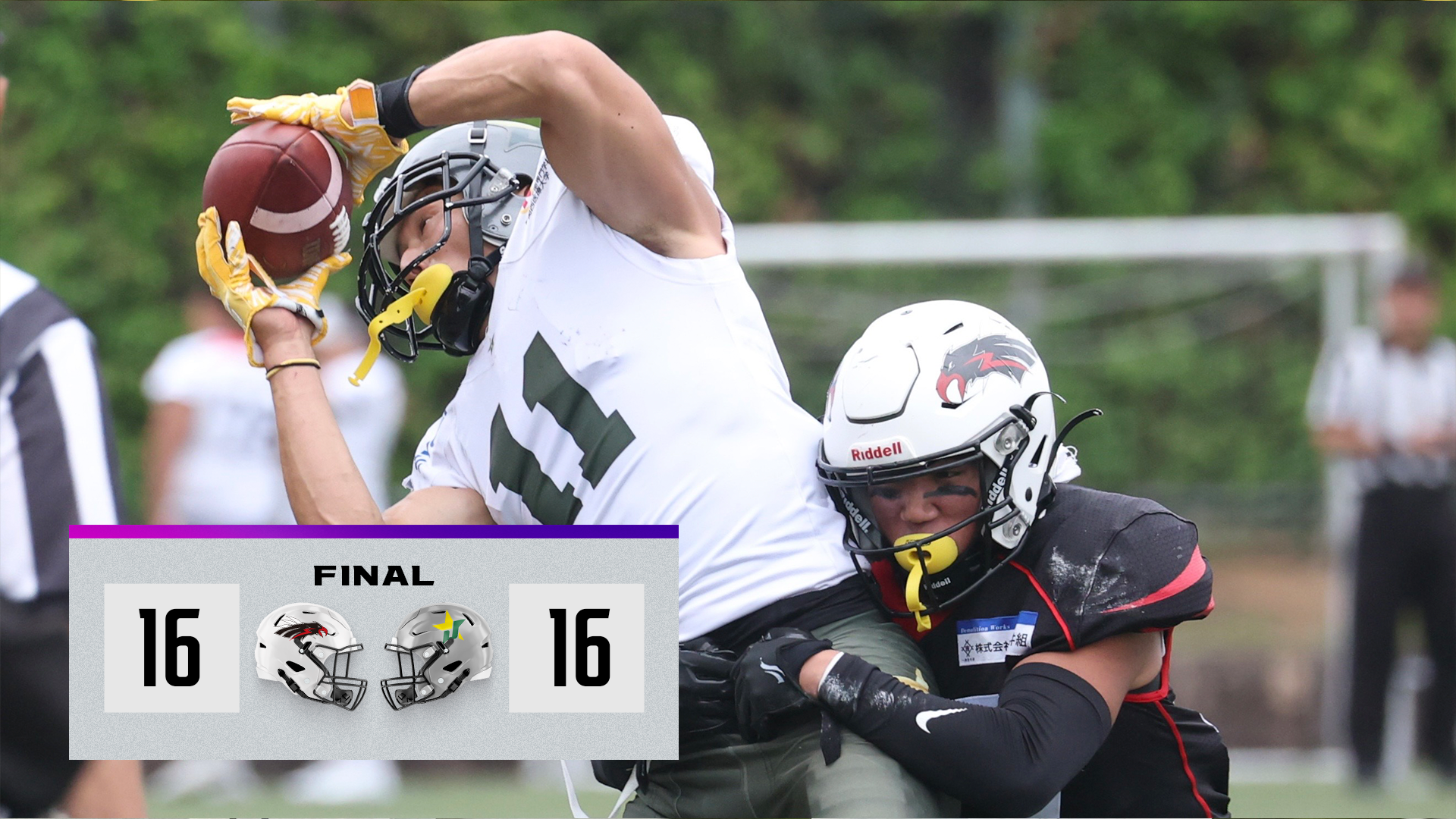 アズワンは第4クオーターにパントリターンタッチダウンと、RB吉田潤平のタッチダウンランで試合時間残り1分23秒で同点に追いついた。