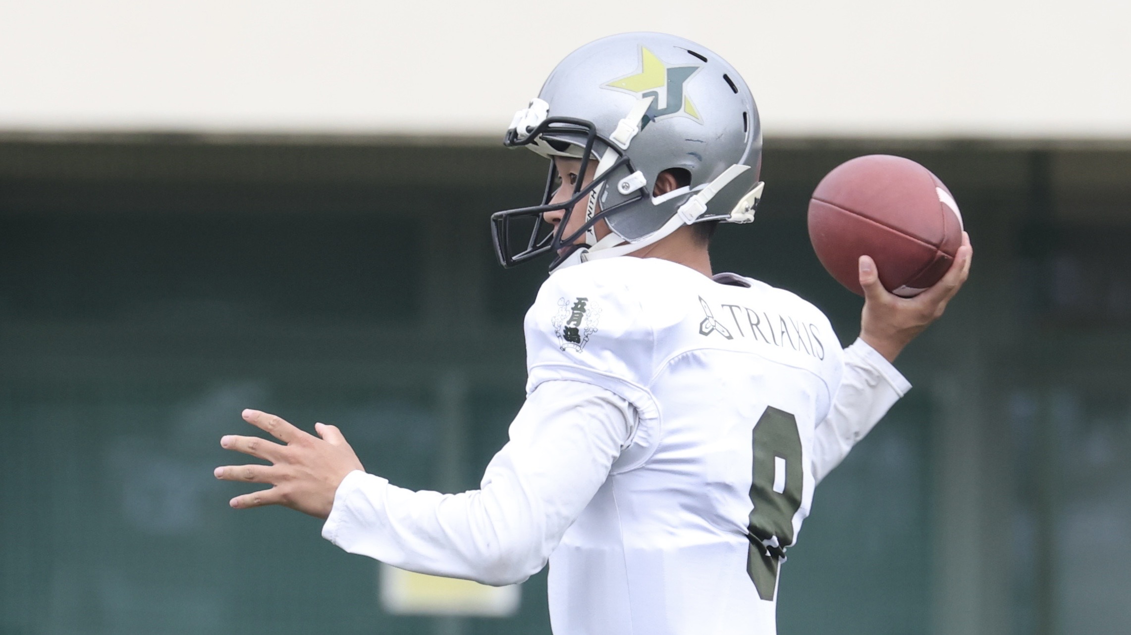 【パスを投げるTRIAXIS J-STARS QB馬庭功平 ©X LEAGUE】