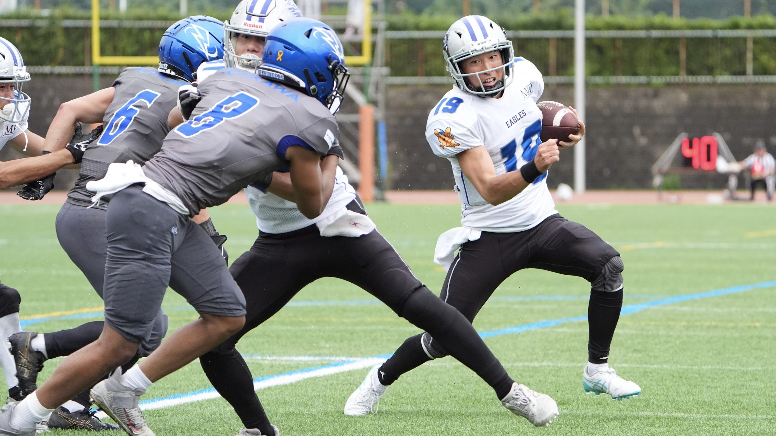 【タックルを交わして走る警視庁イーグルスQB齋藤詩伸(右) ©X LEAGUE】