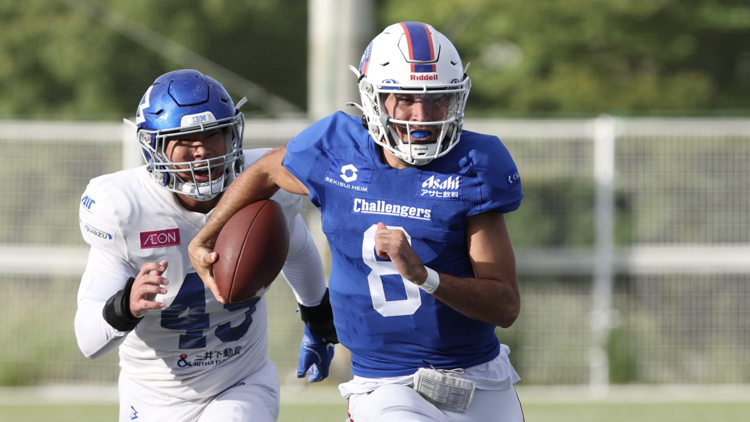 【自らボールを持って走るSEKISUIチャレンジャーズQBギャレット・サフロン(右) ©X LEAGUE】