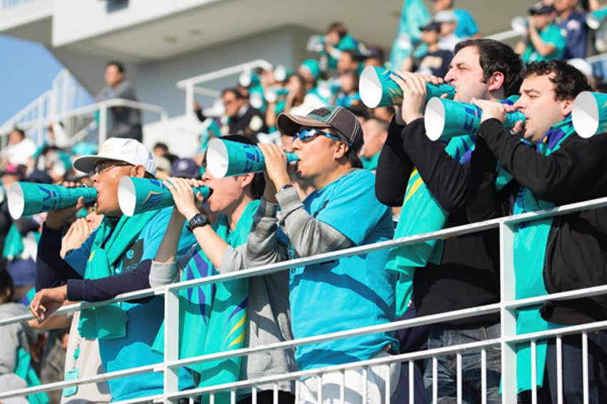 スタジアム入口で、SEA-Cheerが皆さんをお出迎えします。ぜひSEA-Cheerから直接、爆声器を受け取ってください。