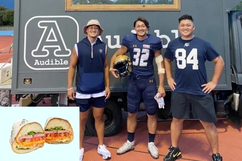 ※AUDIBLEさんはオービックシーガルズの西村有斗選手(日本大出身、WR5番)・七斗選手(立命館大出身、RB32番)のご実家のお蕎麦屋さんからの出店です。両選手の兄である拓斗さん(立命館大パンサーズOB)が運営されています。