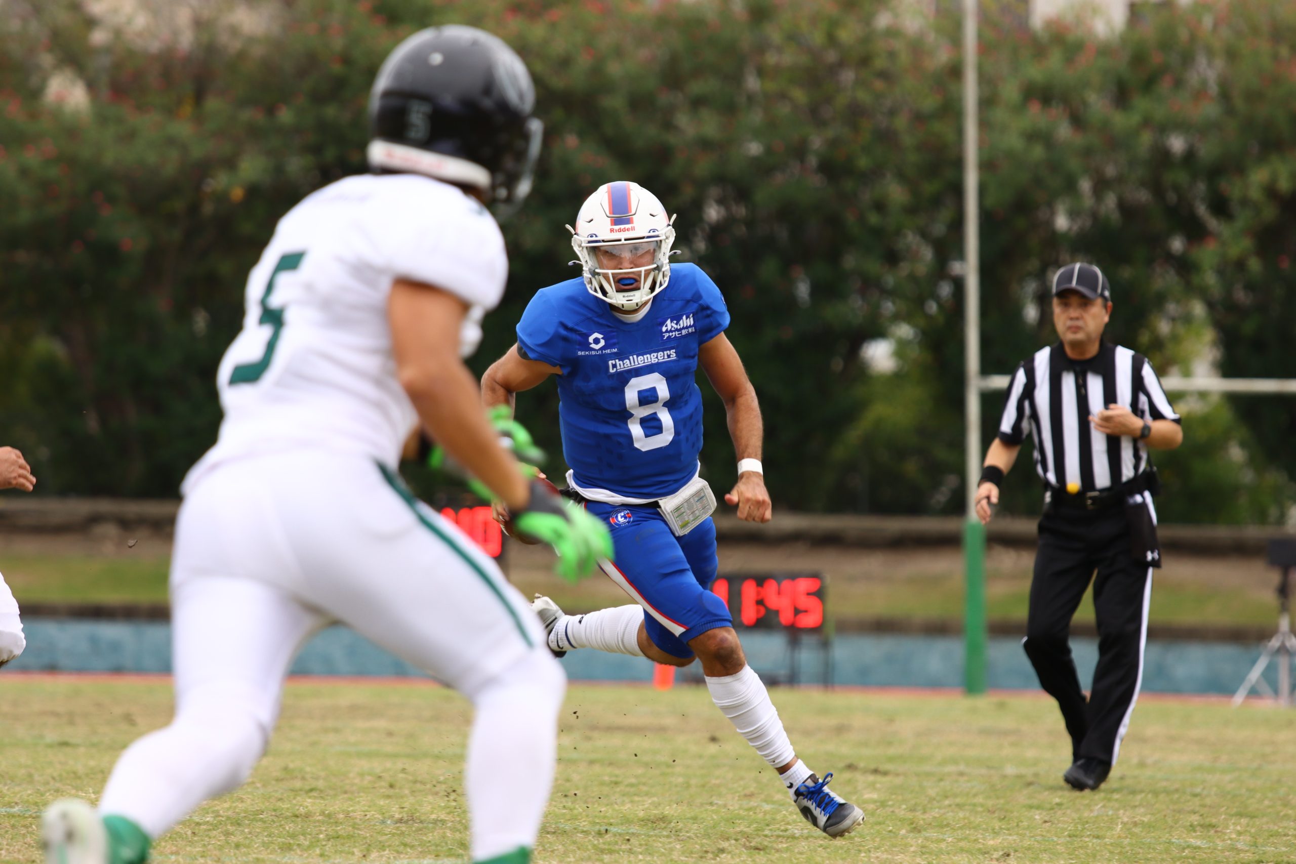 【自らキャリアーとなって走るSEKISUIチャレンジャーズQBギャレット・サフロン ©X LEAGUE】