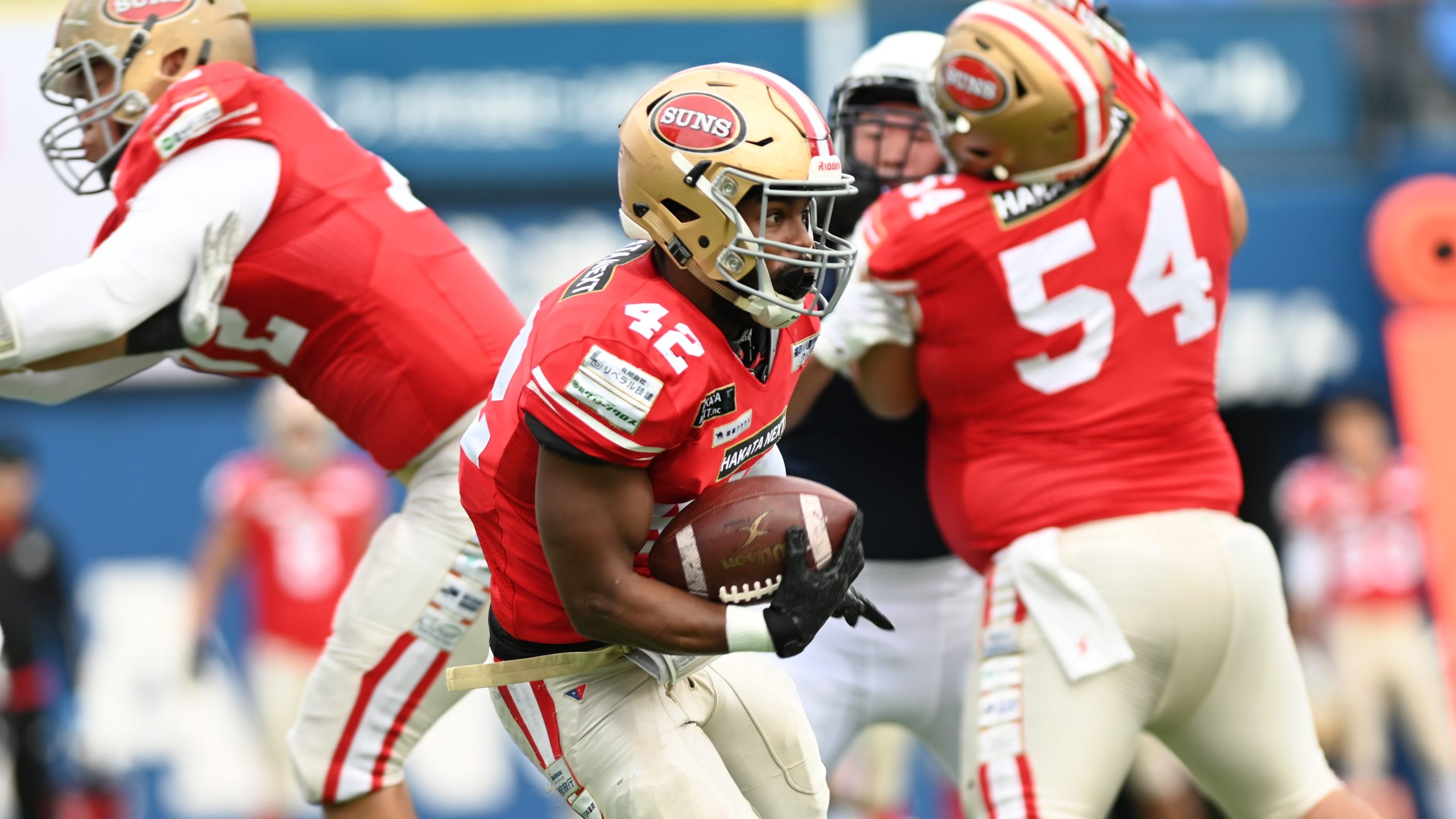 【ランで139ヤードを稼いだハカタネクスト福岡RBチャンス・ベル ©X LEAGUE】