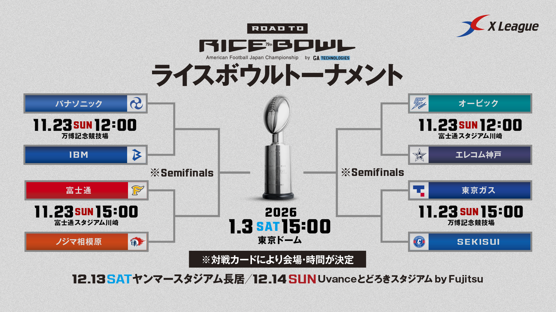 X1 Super秋季リーグ戦レギュラーシーズン全6節が終了 ライスボウルトーナメント出場8チームが決定