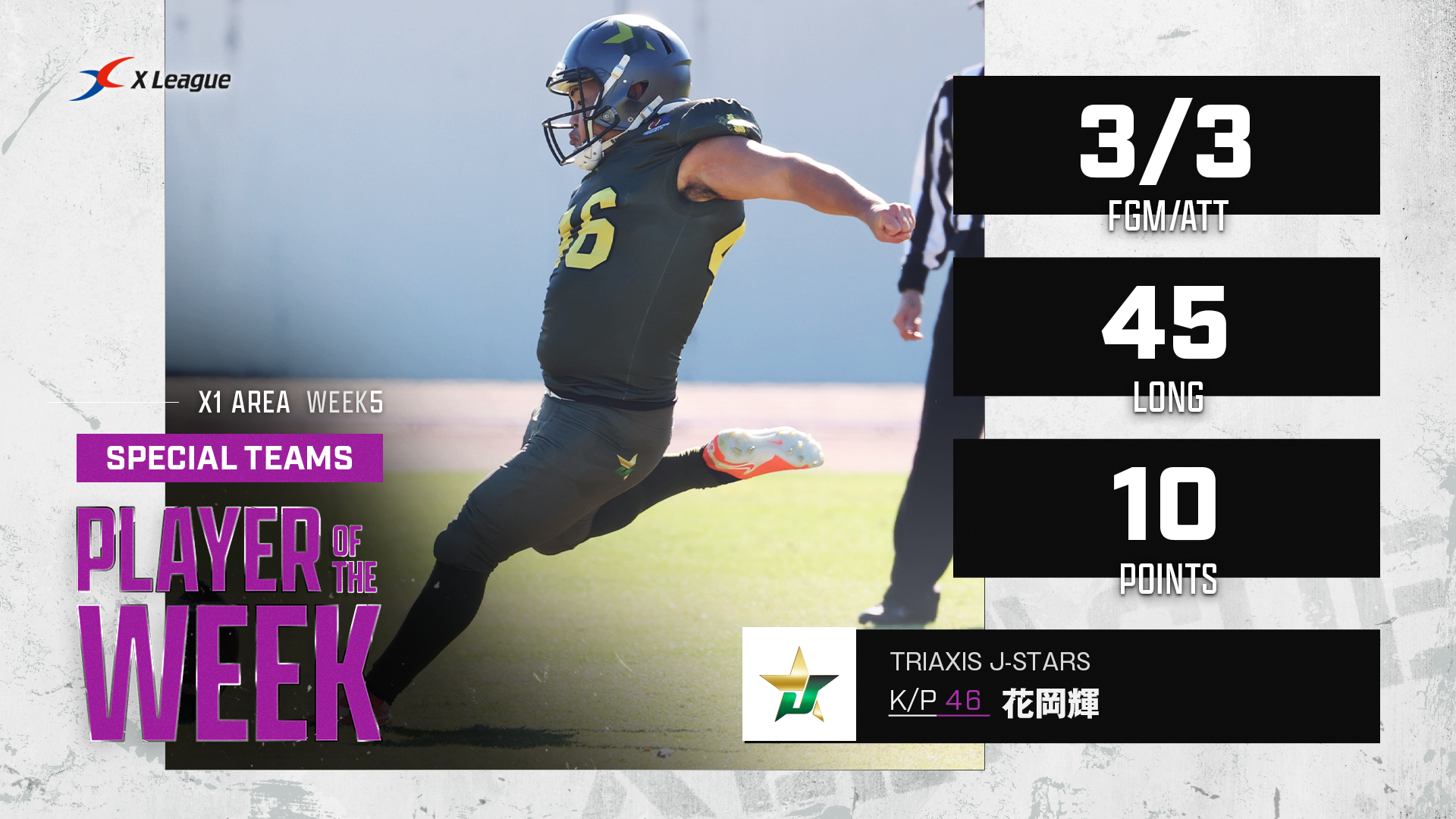 【X1 Area週間MVP】第5節は突出した個人記録に評価 Play of the Weekには50ヤード超のFG