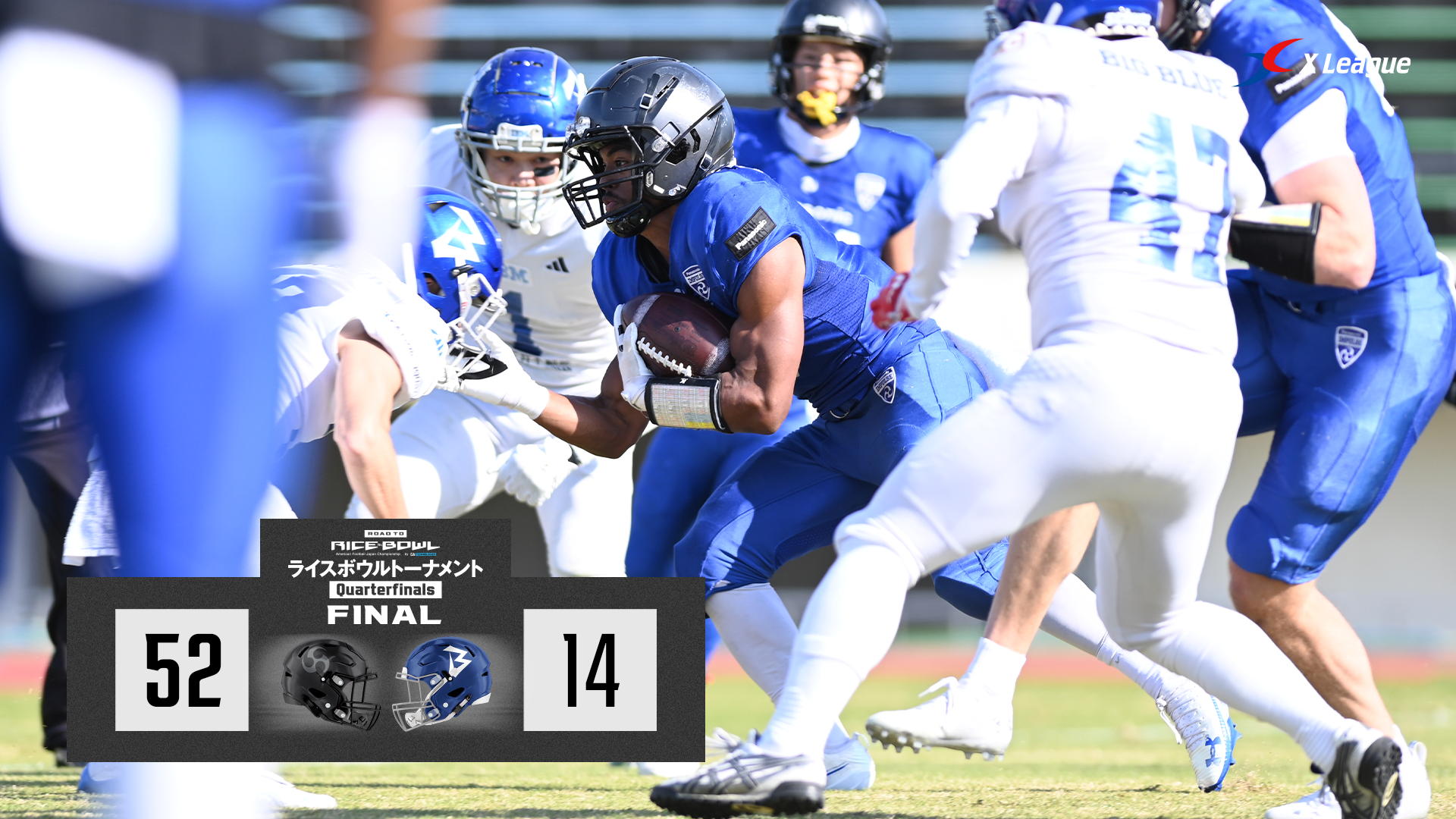 ライスボウルトーナメント1回戦(クオーターファイナル)、パナソニック インパルス対IBM BIG BLUEの一戦が万博記念競技場で行われた。昨シーズン王者のパナソニックが7タッチダウンを奪うなど52対14で快勝し、連覇に向けて好発進した。