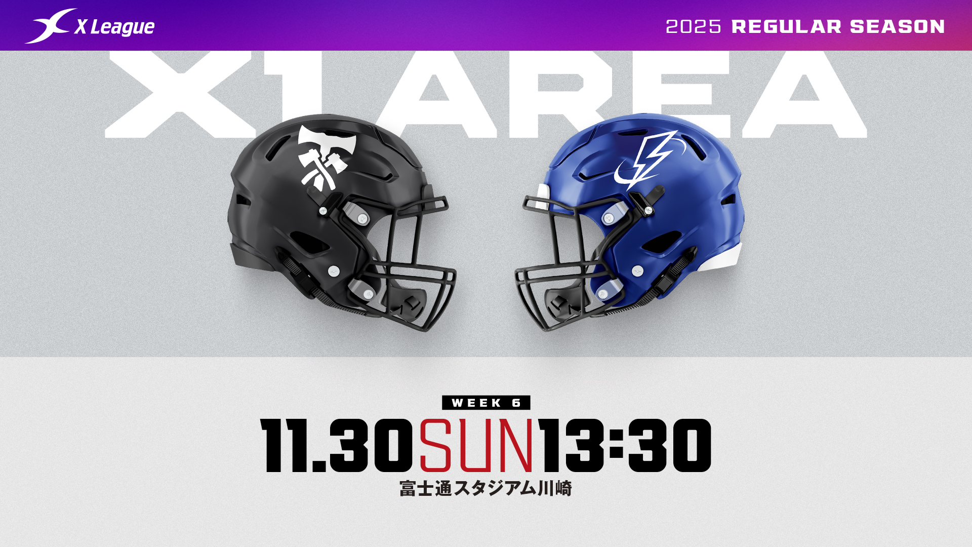 | 見どころ | TRIAXは最終戦を勝利で飾って、昨年に続き勝率5割でシーズンを終えられるか。BLUE THUNDERSはパスオフェンスに向上が見えるだけに、X1 Areaでの初勝利を獲得したい。 |