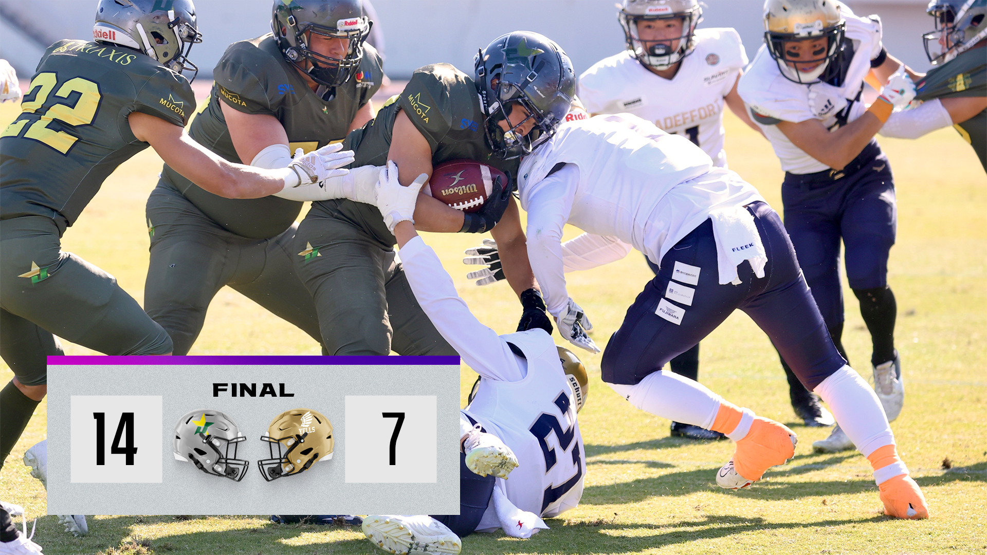 しかし、J-STARSは第2クオーターにQB馬庭からWR遠藤昇馬への24ヤードスコアリングパスで同点に追いつき、第3クオーター序盤にWRドニー・キングJr.の23ヤードタッチダウンパスキャッチで逆転した。