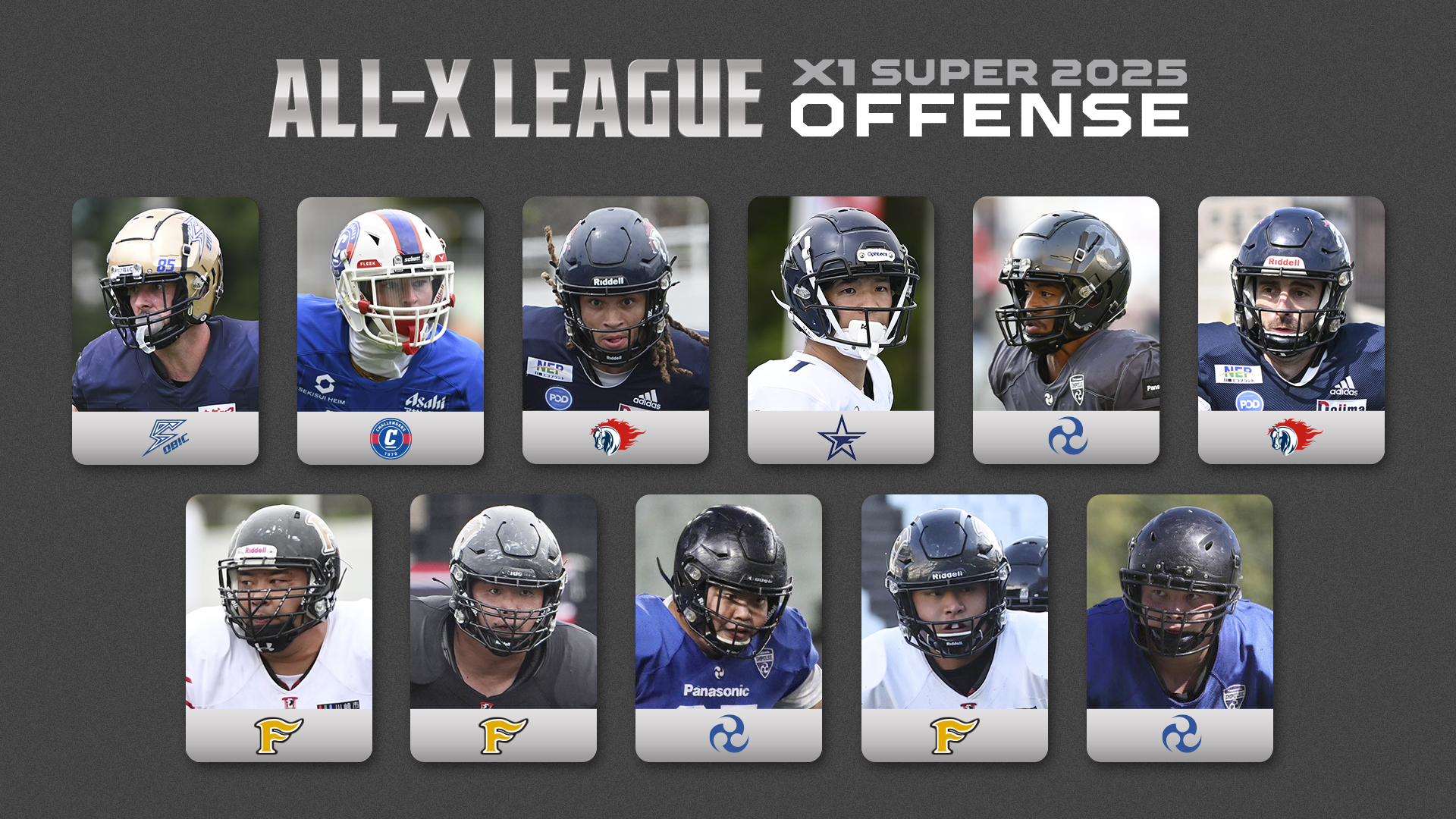 2025年12月26日(金) 18:00Xリーグとメディアが選出する2025年度のX1 SuperのAll-X League “Class of 2025’’の延べ27選手(オフェンス11名、ディフェンス11名、スペシャルチーム3名、MVP、および最優秀新人賞)が以下のように決まりました。
