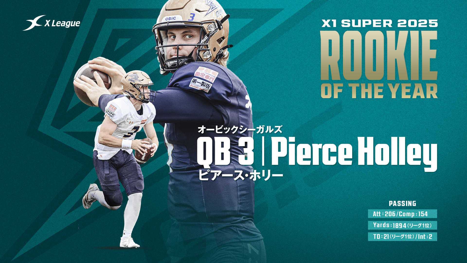 #3|Pierce Holley| オービックシーガルズ ルーキー・オブ・ザ・イヤーで私に投票してくれた全ての方に感謝します。名誉でありがたいことです。 チームメートのハードワークにもお礼を述べたいです。彼らの努力なしにはこの受賞はありませんでした。 そして、私にチャンスをくれ、サポートを続けてくれたコーチたちにも感謝します。 これからはチームがライスボウルに勝てるように貢献し、毎年よりよい選手、よりよいチームメートとなることが目標です。 |