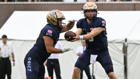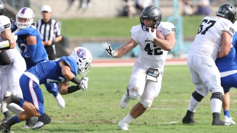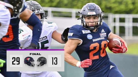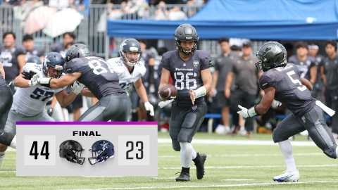 - 【オービックシーガルズQBピアース・ホリー(右)からハンドオフを受けるRB島田隼輔 ©X LEAG... 続きを読む